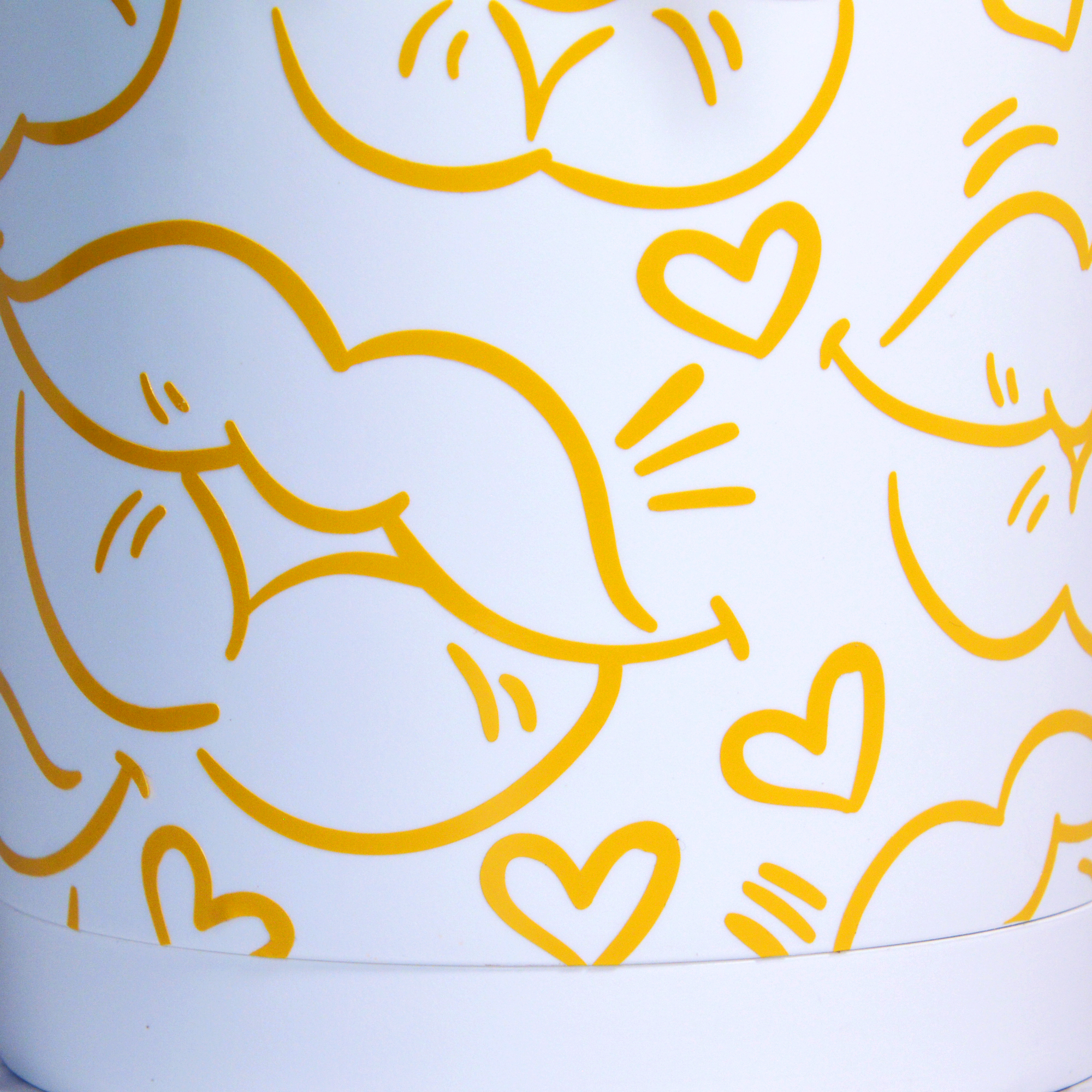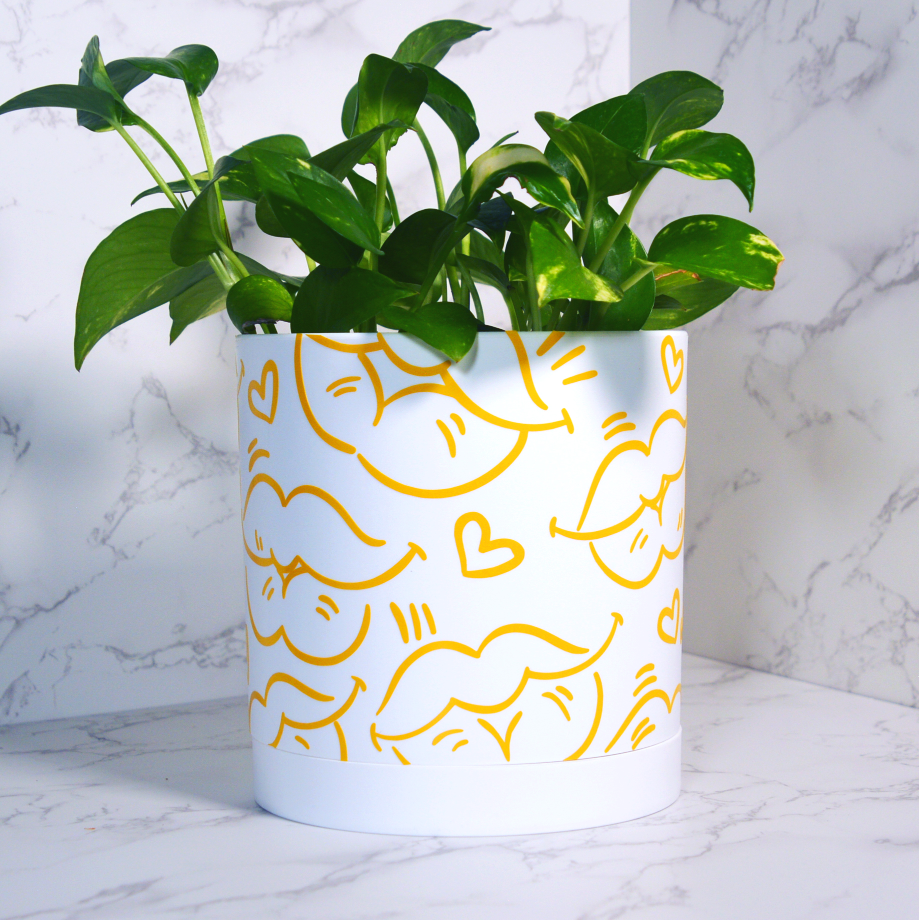 A playful, hand-drawn pattern featuring puckered lips and sweet little hearts. The bold line art pops against a solid background, giving this flirty, fun design a modern edge — perfect for adding charm and personality to any planter.